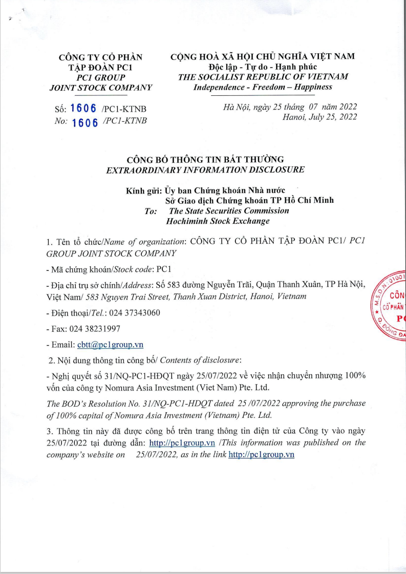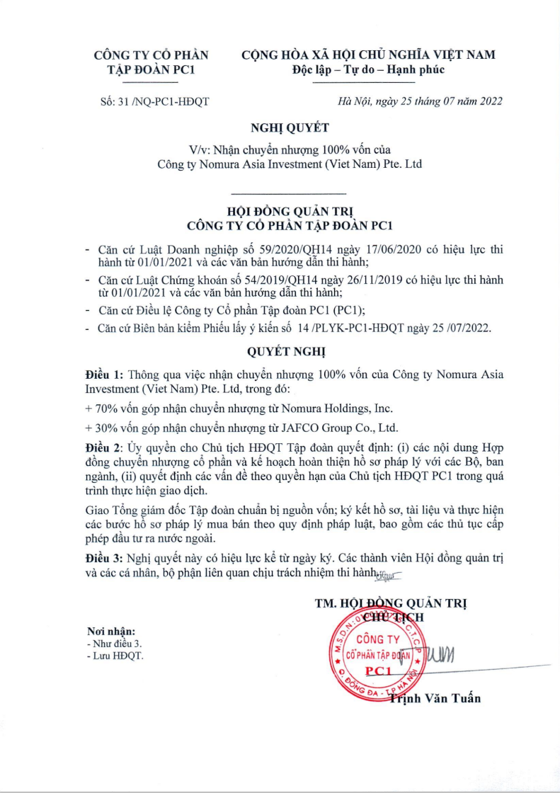 Link:20220725 - PC1 - CBTT Nghi quyet HDQT vv nhan chuyen nhuong 100% von cua cong ty Nomura Asia Investment (Viet Nam) Pte. Ltd._VN_signed