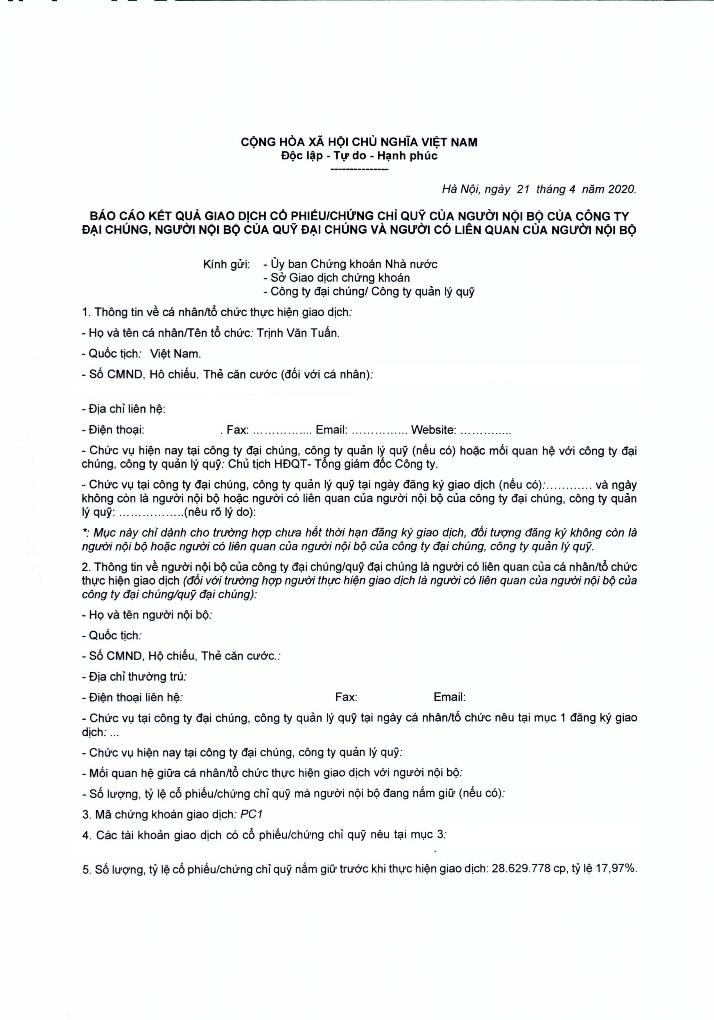 PCC1 Báo cáo kết quả giao dịch cổ phiếu/chứng chỉ quỹ